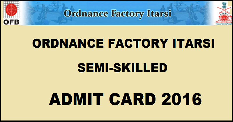 Iof Ordnance Factory Itarsi Admit Card 2016 For Semi Skilled Exam Download Here